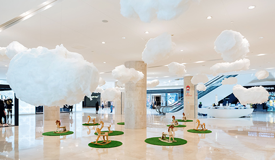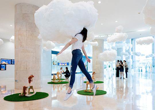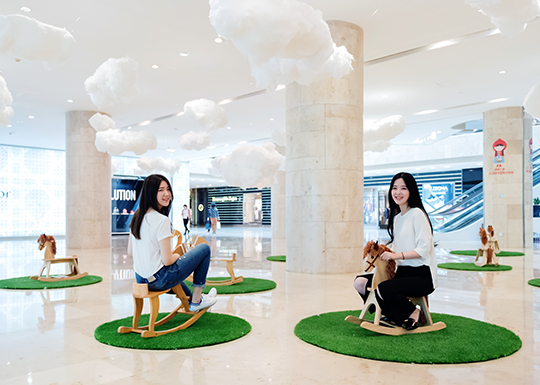 White clouds and wood horse