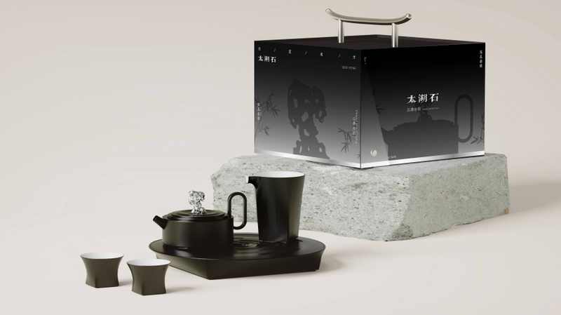 “太湖琢影"茶具设计灵感取自中国古老哲学“天圆地方”,整体造型体现了天地间的和谐与圆融。茶具器皿上圆下方的结构,蕴含传统文化中“天圆象征包容无限,地方象征稳重踏实”的深厚寓意,彰显出东方审美与哲学智慧的融合。茶壶提手精心设计为抽象的太湖石形态,太湖石以其玲珑剔透、洞穿精妙而闻名,古人视其为“天地灵气之凝聚”,象征天地之间的联结与互动,增添了茶具的文化层次与视觉趣味。
